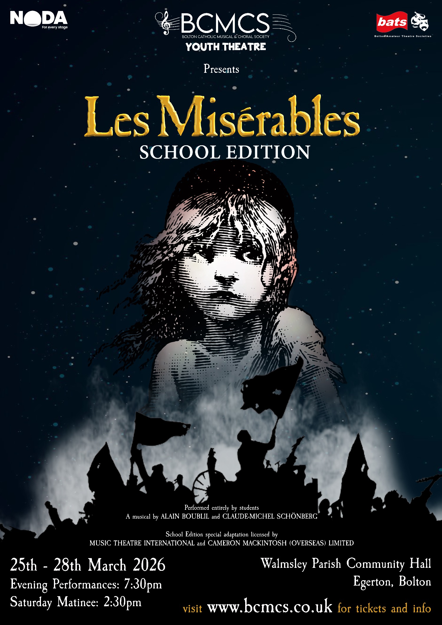 Each year the Youth Theatre performs a musical show in March or April. Rehearsals are held at Bolton Parish Church hall, Silverwell Street, Bolton between 6.45 pm and 8.30 pm on Wednesday evenings, beginning in mid–September. Parents or guardians are responsible for the prompt arrival and collection of their children, although no child will ever be left unattended.